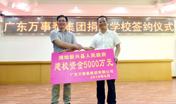 萬事泰集團將向新興縣人民政府捐資5000萬元,在新興縣城南部建設一所小學,擬命名為“新興縣萬事泰實驗學校”。學校選址在新興縣城南原縣魚苗場附近。學校將按照標準化、現代化的要求規劃建設,校園占地面積約100畝,終端辦學規模60個教學班,提供2700個學位。