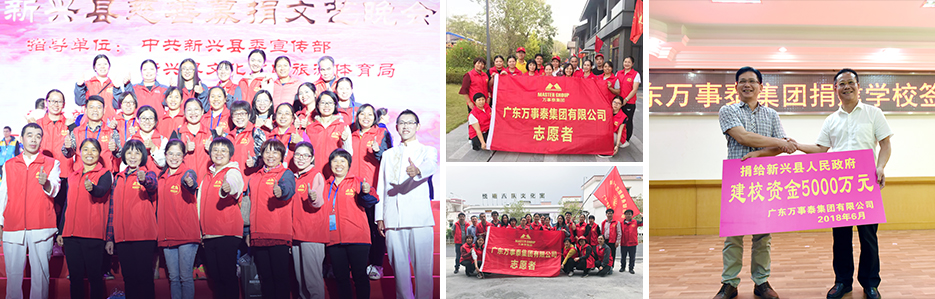 為響應2020年廣東省扶貧濟困日活動的號召,萬事泰集團積極參與“扶貧濟困日”活動,被縣政府授予2020年度扶貧濟困突出貢獻銅獎。???一直以來,萬事泰集團充分發揚造福社會、回報社會的優良傳統,傳遞廣行善舉、共創和諧的正能量,以實際行動踐行著一個企業應盡的社會責任,積極投身于慈善公益事業。截取2017年至今,萬事泰集團已向社會各界公益事業及慈善機構捐款近6千多萬元。