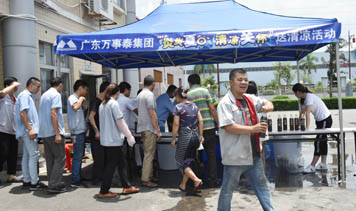 炎炎夏日,清涼關懷。8月6日,萬事泰集團開展“夏日送清涼”活動,為一線員工們免費派發高溫福利——清涼冷飲。
