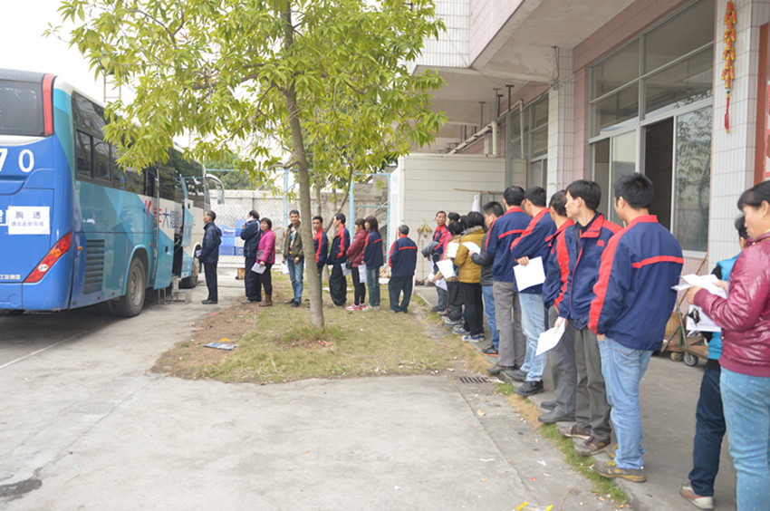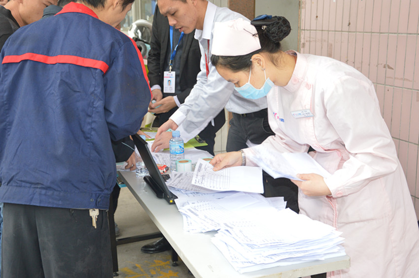 (萬事泰員工正在排隊進行胸透體檢)