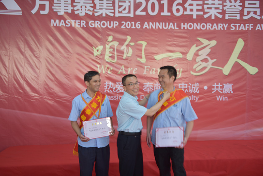 集團(tuán)訊 2016年8月26日下午4時,為表彰與萬事泰集團(tuán)風(fēng)雨兼程、恪盡職守的老員工們的奉獻(xiàn),傳承、發(fā)揚萬事泰“家”文化,集團(tuán)舉行了主題為“咱們一家人”的2016年度的新晉榮譽員工頒獎典禮和答謝晚宴。