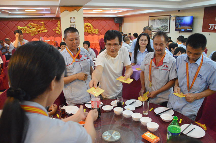 集團(tuán)董事長梁桂泉現(xiàn)場派紅包