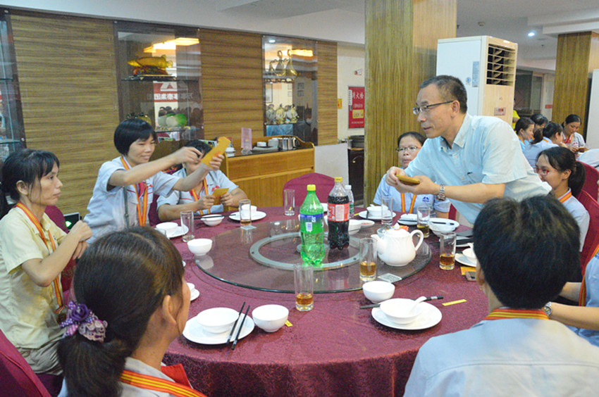 答謝晚宴上,集團(tuán)董事長梁桂泉從廣州特地趕回參與慶祝,令眾人驚喜,他對集團(tuán)榮譽員工風(fēng)雨與共、辛勤付出表示感激和感謝,希望所有老員工能一起努力,再接再厲,創(chuàng)造出萬事泰更好的明天。