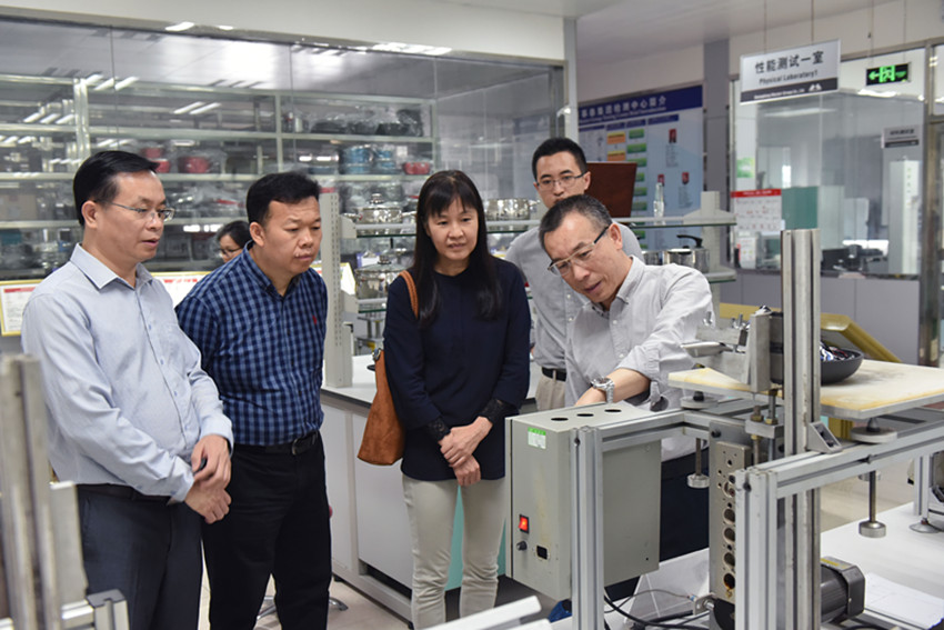 調(diào)研組一行在集團(tuán)副總裁劉炳耀帶領(lǐng)下,先后參觀我司的智能整體廚房展廳、檢測(cè)中心、技術(shù)中心和生產(chǎn)車間。調(diào)研中,調(diào)研組一行認(rèn)真聽取了劉總對(duì)集團(tuán)的發(fā)展歷程、發(fā)展規(guī)模以及技術(shù)創(chuàng)新成果和優(yōu)質(zhì)產(chǎn)品等介紹,并詳細(xì)了解了集團(tuán)產(chǎn)品的生產(chǎn)工序、工藝及技術(shù)情況。