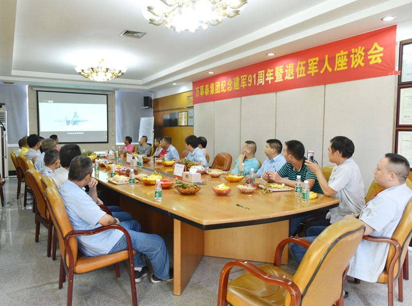 集團(tuán)訊 8月1日,為慶祝中國(guó)人民解放軍建軍91周年,弘揚(yáng)軍人作風(fēng),凝聚團(tuán)隊(duì)士氣,萬(wàn)事泰集團(tuán)召開(kāi)了慶 “八一”建軍節(jié)暨退伍軍人座談會(huì)。會(huì)議由黨支部書(shū)記、行政部經(jīng)理陳永錦主持,集團(tuán)總裁辦主任梁賢武出席了會(huì)議,退伍軍人職工30余人參加了座談會(huì)。