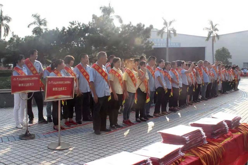 集團(tuán)訊 9月14日,以“共創(chuàng) 共享 共贏”為主題的廣東萬事泰2018年榮譽(yù)員工頒獎(jiǎng)典禮在萬事泰總部隆重舉辦,為106名新晉10年、15年、20年獲得“榮譽(yù)員工”光榮稱號(hào)的員工頒發(fā)榮譽(yù)獎(jiǎng)牌和榮譽(yù)證書。萬事泰董事長梁桂泉、常務(wù)副總裁劉炳耀等集團(tuán)高層領(lǐng)導(dǎo)出席了本次典禮及晚宴。