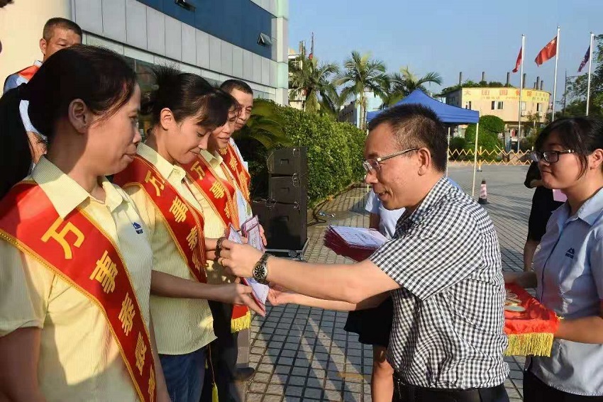 萬事泰常務(wù)副總裁劉炳耀現(xiàn)場派發(fā)榮譽(yù)大紅包,榮譽(yù)員工們喜笑顏開