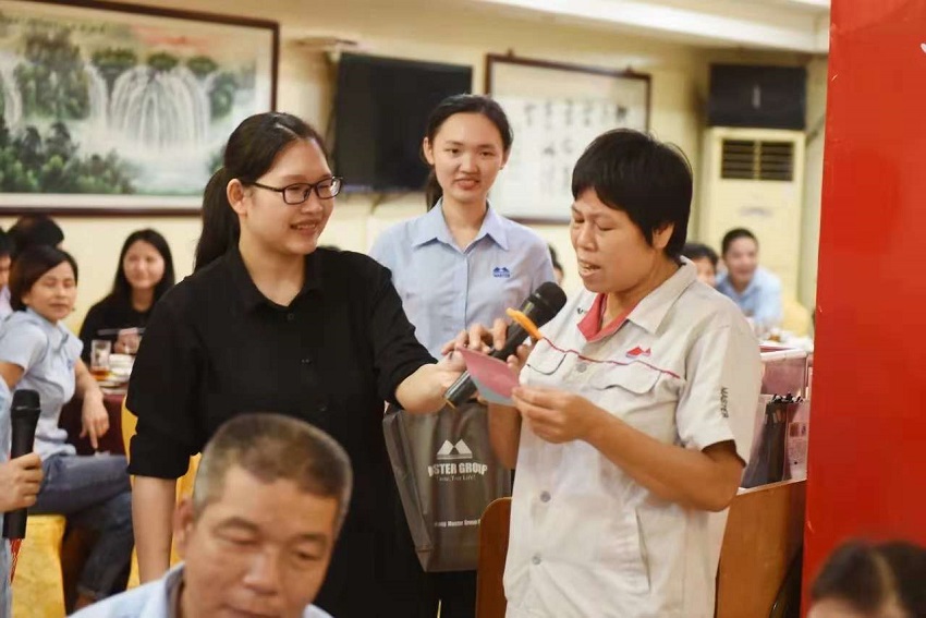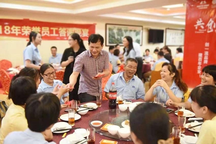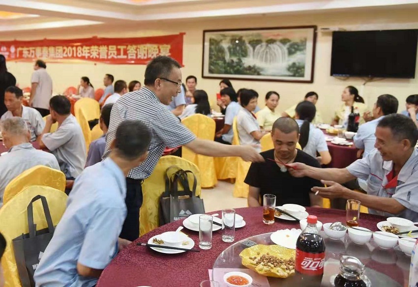 萬事泰董事長梁桂泉現(xiàn)場派發(fā)榮譽(yù)大紅包,榮譽(yù)員工們喜笑顏開