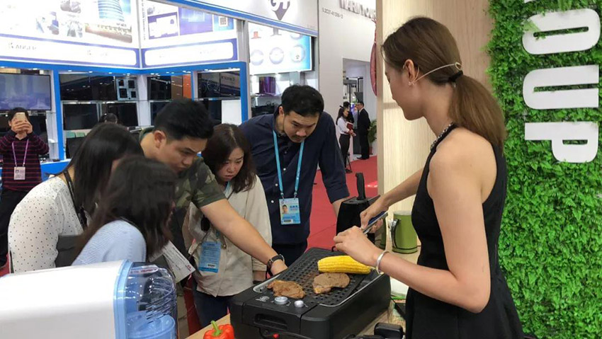本次參展,電器公司重點推出燒烤類、磨刀類、奶泡機類和嬰兒用品類小家電產品。其中,燒烤類的無煙電烤盤一經推出,就收到了大量客戶的詢價。客戶們對它產生了濃厚的興趣。這個電烤盤采用的是堆疊式設計,使安裝更簡易,清洗更方便。它通過內置的風扇及濾網能最大程度地消除燒烤時產生的油煙,適用于廚房、客廳、辦公室,甚至臥室等各種室內環境,讓人們隨時隨地享受燒烤的樂趣,同時又能避免滿屋油煙的困擾。