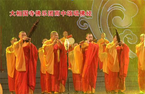 此次晚會總共演出包括河南大相國寺佛樂團帶來的《佛經頌唱一一朱云飛片段》、著名歌 手容中爾甲演唱的《祈禱》《神奇的九寨》、著名梵音天后薩頂頂演唱的《萬物生》《雀神》 等十三個節(jié)目。雖然晚會現(xiàn)場下著雨,但觀眾的熱情擋不住。大相國寺的法師們帶來的演奏曲風悠揚、感人肺腑,贏得觀眾歡呼;云浮市快樂之聲合唱團表演的《六袓壇經》低音祥和、高音穩(wěn)健,暸亮的嗓音絲毫不受大雨的影響;著名藏族歌手容中爾甲帶來《祈禱》和膾炙人口的《神奇的九寨》《高原紅》,高亢的嗓音贏得陣陣掌聲;薩頂頂?shù)某鰣鰹橥頃鎏砹藷崃业臍夥眨度f物生》《雀神》《自由行走的花》三首名曲激起觀眾的熱情,將晚會推向了高潮;華南師范大學合唱團的合唱《天際和聲》《等》以及著名歌手旺姆演唱的《天籟之爰》精彩紛呈。