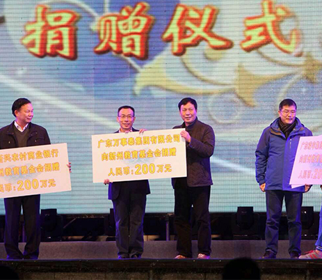 在新興一中百年慶典之際,新興縣成立新州教育基金會,在19日舉行的捐贈儀式上,教育基金會收到來自多家企事業單位和個人的捐資。 截至目前,基金會已收到募捐資金2500多萬元。其中,萬事泰集團捐贈200萬元。