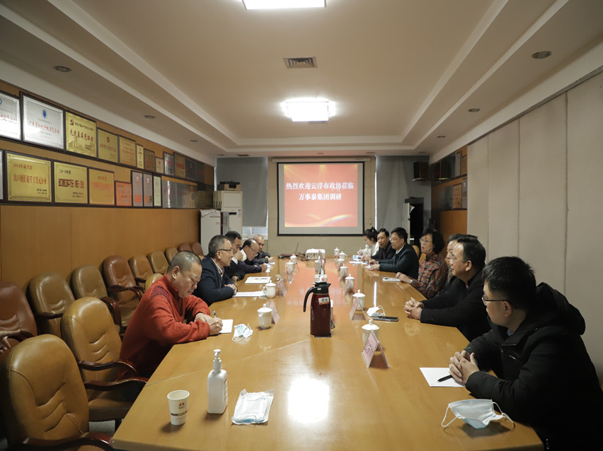 集團訊 2月8日下午,云浮市政協黨組書記、主席梁麗嫻,黨組成員施東紅,秘書長賴家豪,以及新興縣政協主席梁國華、秘書長梁道勇等領導一行蒞臨萬事泰集團調研,萬事泰集團執行總裁劉炳耀、總裁辦主任梁賢武等集團領導陪同調研。