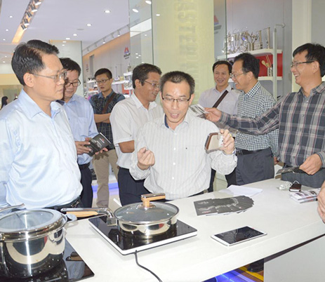胡副市長先后參觀了產品檢測中心和產品展示大廳,并且對集團在116屆廣交會亮相的智能廚具二代進行深入了解。在觀看了工作人員對智能廚具二代的演示后,胡副市長提出了對產品的開發建議,并鼓勵萬事泰集團再接再厲,完善產品,使其盡早投入市場。
