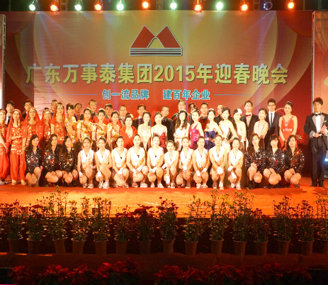 2月9日晚上八點,萬事泰集團2015年迎新春晚會在集團運動場舉行。出席迎春晚會的集團領導有董事長梁桂泉、常務副總裁劉炳耀以及集團各部門領導,到場的員工有2000多人。晚會還邀請了縣有關部門領導出席。晚會熱烈、內容豐富。