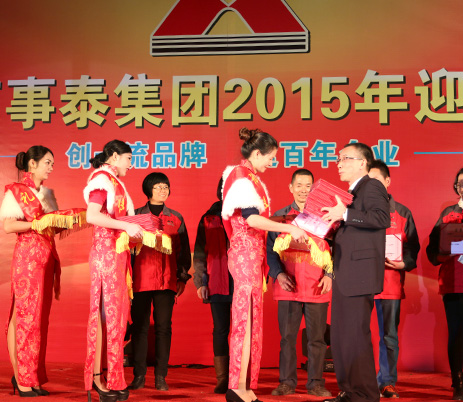 副總裁劉炳耀致祝酒詞,他表示, 2014年,在全體員工的努力下,集團取得了豐碩的成果,在新的一年里,希望大家能配合集團藍圖發展規劃繼續努力工作,為實現萬事泰的偉大騰飛添磚加瓦