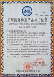 - ●采用國(guó)際標(biāo)準(zhǔn)產(chǎn)品標(biāo)志證書(shū)