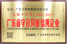 - ● 廣東省連續(xù)十六年守合同重信用企業(yè)