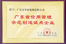 - ●廣東省信用管理示范創(chuàng)建試點(diǎn)企業(yè)