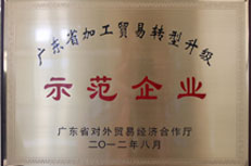 - ●廣東省加工貿(mào)易轉(zhuǎn)型升級(jí)示范企業(yè)