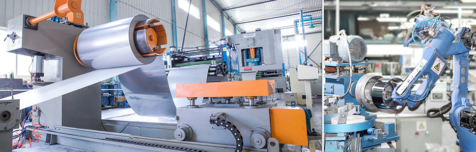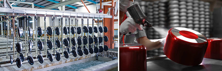 集團(tuán)擁有先進(jìn)的大規(guī)模生產(chǎn)基地,屬下工廠占地23萬(wàn)余平方米, 標(biāo)準(zhǔn)廠房面積15萬(wàn)多平方米,擁有自動(dòng)/半自動(dòng)生產(chǎn)線 20 余條、各類先進(jìn)機(jī)械設(shè)備達(dá) 2000 多臺(tái)(套),主要生產(chǎn)設(shè)備和質(zhì)量檢測(cè)設(shè)備均為進(jìn)口或采用國(guó)內(nèi)一流設(shè)備,關(guān)鍵技術(shù)從歐洲、日韓等國(guó)引進(jìn),設(shè)備 技術(shù)水平居于國(guó)內(nèi)行業(yè)領(lǐng)先。集團(tuán)生產(chǎn)能力位居行業(yè)前列,年可生產(chǎn)各種規(guī)格的不銹鋼餐廚炊具、鋁制餐廚鍋具達(dá)2800萬(wàn)只、鋼化玻璃蓋1200萬(wàn)只,小家電200萬(wàn)只,不銹鋼和鋁制品年加工能力超過(guò)36000 噸,年可出口貨值超過(guò) 3500 個(gè)標(biāo)準(zhǔn)貨柜,能滿足世界各地客 戶大規(guī)模的訂單需要。